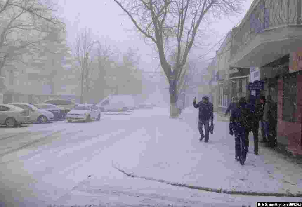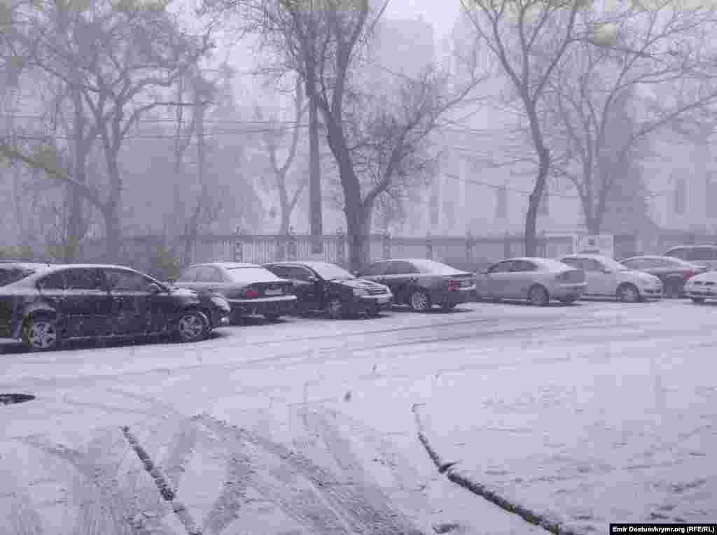 В середине первого месяца весны Симферополь засыпало снегом. На улицах города гололед, пешеходы передвигаются с трудом, а многие автомобилисты предпочли не ездить в такую погоду.
