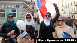 А вот эти девушки, которых я встретила по дороге к метро, кажутся настоящими энтузиастками. Посмотрите, сколько флажков в руках. Попросила разрешения сфотографировать, спросила, откуда они. "Москвички", – они ответили.