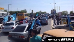 Как рассказал Крым.Реалии один из участников автопробега, сначала инспекторам не понравилось, что автомобилисты сигналят. «Мы договорились ехать тихо, но потом нас снова остановили. Гаишники попросили убрать большие флаги с древками, мы согласились, но нас снова не пустили», – рассказал молодой человек.