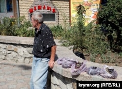 А вот этот старик честно пытается свести концы с концами. По идее, жилье в Алуште должно обеспечивать владельца неплохим доходом, ан нет. Не обеспечивает. Если курортников нет – и жилье на ЮБК не в радость пожилым, пусть и с российскими пенсиями. Жизнь-то тут ой как недешева! Кстати, вино из винограда дед почему-то не делает.