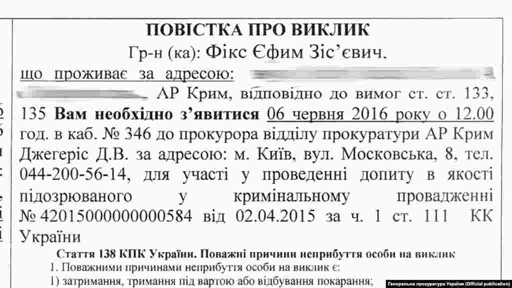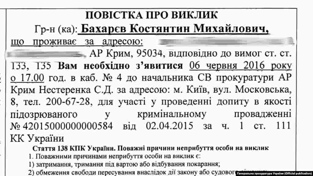 Генпрокуратура Украины опубликовала повестки бывшим и нынешним крымским депутатам и чиновникам