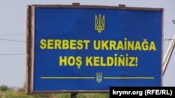 Чонгар – «Вас вітає вільна Україна!». Билборды с такими текстами на украинском и крымскотатарском языках с прошлого года располагаются возле пропускных пунтов на админгранице с Крымом. На других билбордах также на двух языках значится: «Україна. Кримськотатарська автономна республіка. Вітаємо вас!».
