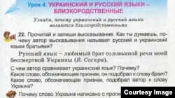 Школьники украинских школ учатся по учебникам, восхваляющим Россию и ее государственные символы. Это касается, в частности, учебников по русскому языку для третьих классов. Волонтер из Мариуполя случайно обнаружила этот факт и утверждает, что это не единичный случай, а практика по всей стране. Более того, руководство одобрено Министерством образования в июле 2014 года. Впрочем, пособие по русскому языку для учащихся 3-х классов ‒ не единственная проблема. Существуют и другие учебники, которые учат украинских детей любить государство-агрессора.
