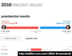Подсчет голосов после президентских выборов в США продолжается, однако кандидат от республиканцев Дональд Трамп уже получил необходимые для победы 270 голосов Коллегии выборщиков (Electoral College). В то же время, Хиллари Клинтон опережает своего соперника на более чем полмиллиона голосов по общему народному голосованию, и прогнозируется, что разрыв будет только возрастать.