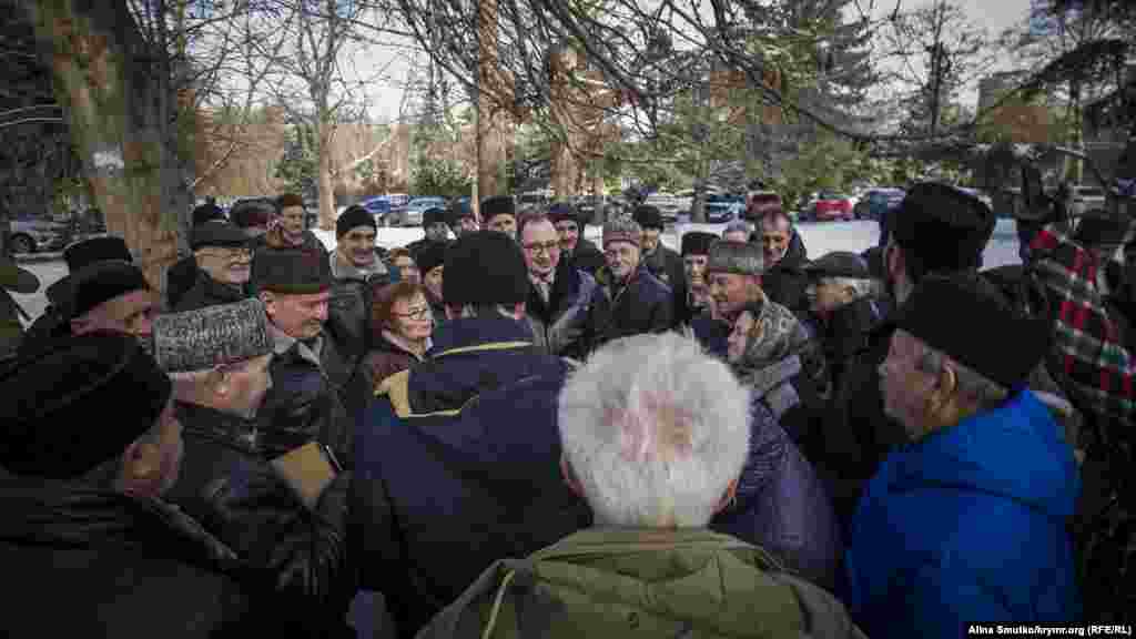 В Симферополе 6 декабря завершилось очередное судебное заседание по «делу Чийгоза», в ходе которого допрашивали секретного свидетеля под фамилией Петров. После заседания крымскотатарские активисты поздравили с Днем рождения российского адвоката Николая Полозова. Вручили ему почетную грамоту за активное участие в деле защиты прав крымских татар, за высокий профессионализм и смелость, несмотря на давление со стороны представителей российской власти. Николай Полозов выступает защитником в ряде резонансных дел на территории России и аннексированного ею Крыма.