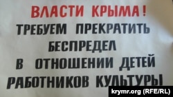 Праздничный формат мероприятия нарушил рескомитет работников культуры Федерации независимых профсоюзов Крыма. Его представители воспользовались ситуацией, чтоб заявить власти о своих требованиях. До этого они несколько раз подавали в мэрию заявки на проведение собственного митинга, но им отказывали в согласовании.