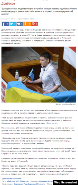Фейк российских новостей: «Савченко назвала участников АТО быдлом»