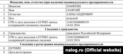 Свидетельство индивидуального предпринимателя в Крыму, по данным российской налоговой службы, Георгию Замятину выдали в марте 2016 года. На полуострове он зарегистрировал ООО «АРК Синергия», которое специализируется на комплексном обслуживании помещений, а также строительстве и отделочных работах.