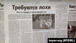 «Крымская правда» в статье под заголовком «Требуются лохи» пишет об аферах с трудоустройством на полуострове. В качестве примера издание приводит историю жительницы Симферополя Ольги Свешниковой. Женщина после долгих поисков работы в одной из соцсетей наткнулась на объявление о приглашении на трудоустройство в рекламную компанию «Лидер». После общения по телефону ее пригласили на собеседование. Женщину сначала направили на обучающие лекции, а затем начали предлагать разные таблетки. Выяснилось, что главный офис фирмы находится не в Крыму, а в российском Санкт-Петербурге. Более того, в базе юридических лиц на сайте Федеральной налоговой службы этой фирмы не оказалось, а это означает, что в любой момент она может изменить место своей «дислокации», как это уже было не раз. «Шарлатанам – выгода, так как использовали чужой труд и не заплатили ни копейки, а человек, надеющийся на трудоустройство с соблюдением всех норм Трудового кодекса, которые гарантируют на начальном этапе, остается ни с чем. Наша героиня не единственная, которая попалась на уловку мошенников», – пишет газета.