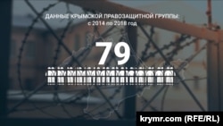По данным Крымской правозащитной группы, за весь период аннексии Россией украинского полуострова минимум 79 человек были лишены свободы по надуманным обвинениям. Сотни крымчан наказали штрафами и админарестами.