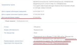 Российские власти пытаются продать на торгах в Крыму 11,5 миллионов кубометров природного газа. Голубое топливо находится в Глебовском подземном газохранилище, которое с 2014 года контролируется российскими властями. Как стало известно Крым.Реалии, газ, выставленный на аукцион, несколько лет назад добыли в Стрелковом Херсонской области, но в итоге он был объявлен «федеральной собственностью». Как это стало возможным, читайте в материале Крым.Реалии.