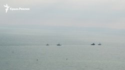 Как сообщает корреспондент Крым.Реалии, катера в сопровождении российских кораблей следуют Керченским проливом в сторону Черного моря.