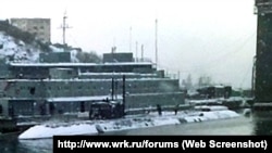 Еще один снимок был сделан, предположительно, в той же бухте, но в другое время года и у причала. Радио Свобода обнаружило его на форуме airbase.ru, где фотография подписана: "Предположительно на фото ПЛА пр.10831 АС-12 зав.№01210 "Лошарик" в Оленьей губе, Северный флот. Снято ориентировочно в 2007-2010 г.г". Исходный источник снимка неизвестен.