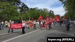 После митинга коммунисты прошли по тому же маршруту, что и предыдущие колонны. В начале шествия коммунистов шел оркестр, игравший мотивы советских военных песен, далее шли ветераны войны, а после них – местная партийная номенклатура и прочие члены партии. В их рядах участники несли плакаты с лозунгами: «Правительство и Законодательное собрание Севастополя в отставку», «Мир! Труд! Май!», а также стилизованные листовки с надписью «Едим Россию».