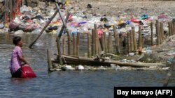 Морской берег в индонезийском городе Бандар-Лампунг, на юге острова Суматра. Весна 2019 года
