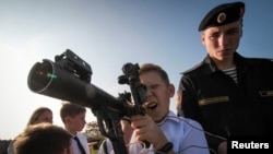 Российские власти открывают в крымских школах кадетские классы и проводят набор в военно-патриотическое движение «Юнармия». Детей учат разбирать оружие и стрелять, носить камуфляж и ходить строем.