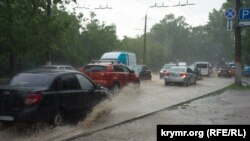 Накануне на Симферополь обрушился ливень с грозой, часть города была затоплена.