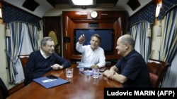 Ранним утром в четверг были опубликованы фотографии канцлера Германии, президента Франции и премьера Италии в вагоне.