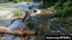 Четвертый день продолжается сброс воды из переполненного в результате сильных ливней в Крымских горах Симферопольского водохранилища. Из-за этого бурным течением воды Салгира, куда сбрасывается вся вода, повреждены ее бетонированные берега, конструкции набережной на отрезке сквер Мира – улица Шмидта, сообщает корреспондент Крым.Реалии.