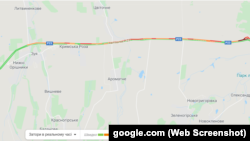 Этому свидетельствует и информация на картах Google. Там видно, что пробка начинается за Белогорском, движение усложнено до поселка Зуя.