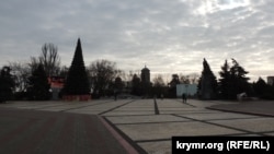 Как сообщает корреспондент Крым.Реалии, рядом с елкой рабочие приготовили железные ограждения, которые традиционно устанавливают в городе во время проведения массовых праздников.