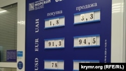 В Крыму 29 сентября резко вырос курс иностранных валют. Со вчерашнего дня курсы доллара выросли в среднем на полтора рубля. Как сообщает корреспондент Крым.Реалии, за доллар в банках полуострова сейчас дают от 77,65 (РНКБ) до 78,5 рублей (ЧБРР). Купить доллар можно от 80,5 (Генбанк) до 81,65 рублей (РНКБ).