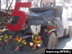 За несколько часов до прибытия симферопольской колонны на Сапун-горе собрались местные автолюбители и мотоциклисты. Машины и мотоциклы оформили иконами, портретами Сталина, надписями «На Берлин», «Долой фашистов», «За Сталина», флагами соседней России, символикой «ДНР», а также лозунгами и флагами ультраправых российских организаций. В колонне, кроме мотоциклов и легковых автомашин, ехали броневики.