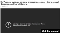 Американский видеохостинг YouTube удалил интервью с благочинным Севастопольского округа Украинской православной церкви Московского патриархата, протоиереем, настоятелем Свято-Владимирского собора в Херсонесе Сергием Халютой из-за «враждебных высказываний».