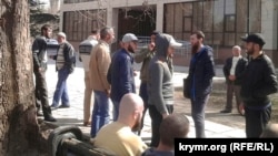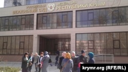 Родственники и друзья фигурантов «дела Хизб ут-Тахрир» у здания Верховного суда Крыма, 24 марта 2017 года