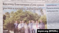 «Крымские известия» сообщают о поездке подконтрольного России спикера крымского парламента Владимира Константинова в Сочи. Здесь он принял участие в привитии так называемого Дерева дружбы. По информации газеты, мероприятие было приурочено к проведению XXX юбилейного заседания Южно-Российской Парламентской ассоциации. Прививки на Дереве дружбы сделали больше шести сотен человек из 170 стран мира. «На сегодняшний день – это одно из наиболее знаменитых селекционных растений. На его ветках зреют 50 разных сортов цитрусовых.