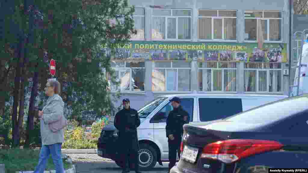 В Керчи 18 октября продолжали скорбеть по горожанам, погибшим накануне в политехническом колледже. Весь день туда, на улицу Войкова, где находится учебное заведение, с цветами и игрушками шли люди. Возле импровизированной стены памяти у дороги недалеко от колледжа вскоре выросла гора цветов и зажглись лампадки. Люди продолжали обсуждать случившееся и строить свои версии о причинах трагедии. На территорию колледжа вход был запрещен, там продолжали работать эксперты-криминалисты и сотрудники МЧС.