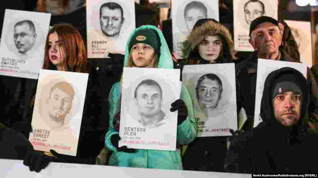«Помни о тех, кто в плену» – акция под таким названием собрала около сотни участников на столичном Майдане Независимости. Они собрались, чтобы выразить поддержку захваченным ФСБ в Черном море украинским военным и тем, кого незаконно содержат в российских и крымских тюрьмах. Участники акции вышли на Майдан с их портретами.