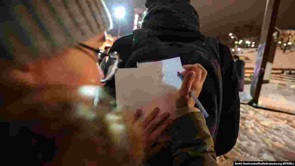 В ходе акции организаторы предлагали всем желающим написать на специальных листовках слова поддержки военным – их обещают передать арестованным украинцам.