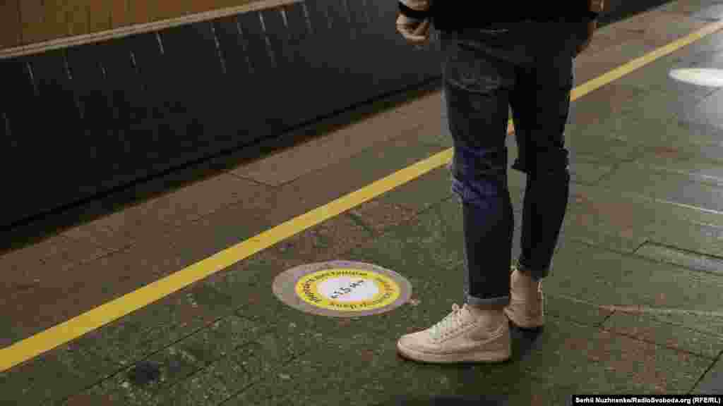 Киевлян призвали соблюдать масочный режим в метро и держать дистанцию в полтора метра на платформах.