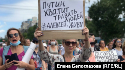Отравление Алексея Навального произошло в четверг утром, когда ему стало плохо в самолете по дороге из Томска в Москву. Многие хабаровчане, пришедшие на митинг, принесли с собой баннеры со словами поддержки основателю Фонда борьбы с коррупцией: "Леха, живи!".