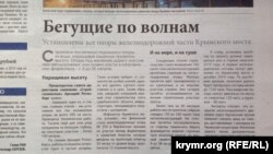 «Крымская газета» в статье «Бегущие по волнам» рассказывает об установлении всех опор железнодорожной части «Крымского моста».