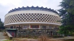 На этой территории располагались обслуживающие подразделения военного санатория – автопарк, прачечная, хозяйственная часть и тому подобное. Сейчас в помещениях уцелели только стены, но если нынешняя ситуация не изменится, их тоже могут разобрать по кирпичику.